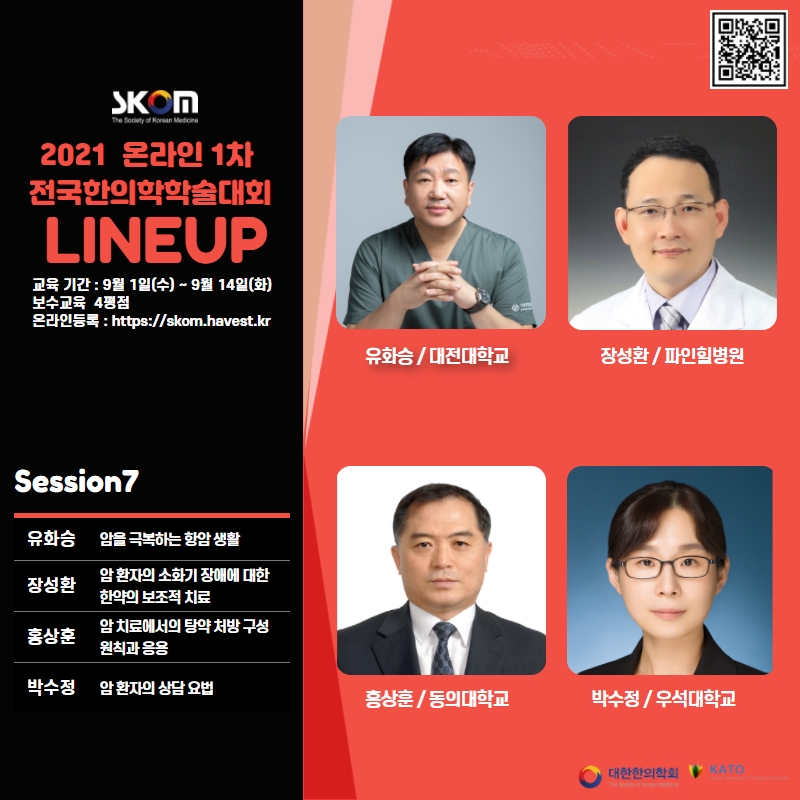 이번 학술대회는 '치료의학 한의학, 나아가야 할 방향과 역할'이라는 주제로 임상에서 바로 활용 가능한, 임상역량 강화를 위한 알찬 강연으로 준비하였습니다.