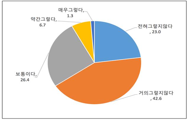 “전기를 충분히 공급하기 위해서라면 대기오염과 건강피해를 감수하더라도 화력발전소를 더 건설하여야 한다고 생각하십니까?”라는 질문에 대해 응답자의 65.6%가 ‘그렇지 않다’라는 반대의견을 냈고, 응답자의 8%는 ‘그렇다’는 찬성의견을 냈다. 응답자의 26.4%는 ‘보통이다’라고 답했다. 신규화력발전소 건설 반대의견이 찬성보다 8배 이상 많았다. 좀 더 세부적으로 응답결과를 살펴보면 ‘전혀 그렇지 않다’ 23%, ‘거의 그렇지 않다’ 42.6%, ‘보통이다’ 26.4%, ‘약간 그렇다’ 6.7%, ‘매우 그렇다’ 1.3%였다.