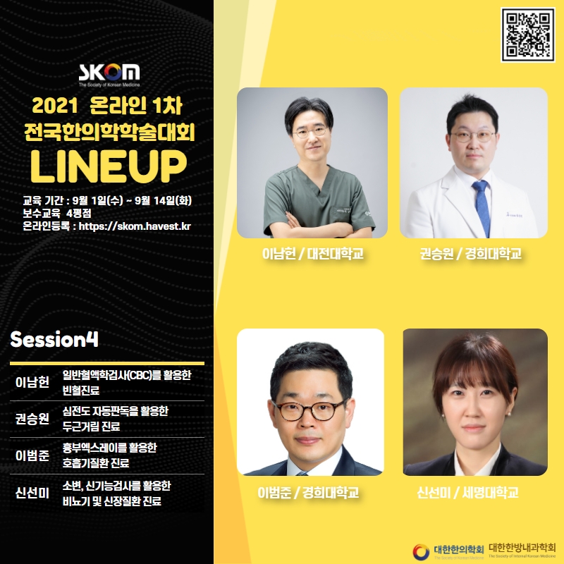 이번 학술대회는 '치료의학 한의학, 나아가야 할 방향과 역할'이라는 주제로 임상에서 바로 활용 가능한, 임상역량 강화를 위한 알찬 강연으로 준비하였습니다.
