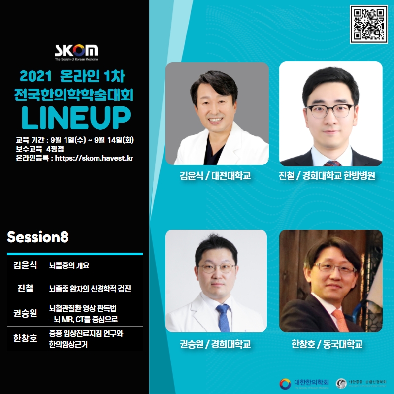 이번 학술대회는 '치료의학 한의학, 나아가야 할 방향과 역할'이라는 주제로 임상에서 바로 활용 가능한, 임상역량 강화를 위한 알찬 강연으로 준비하였습니다.