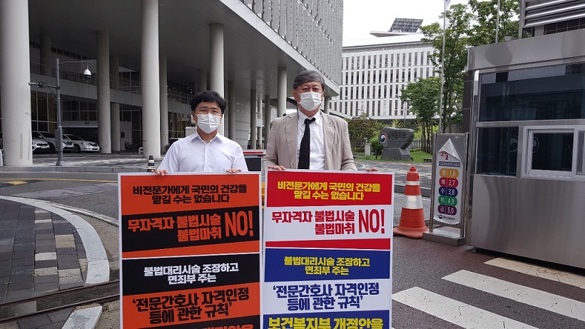8월 31일부터 의료계는 정부세종청사 보건복지부 앞에서 1인 시위를 펼치며, “전문간호사 업무범위 확대가 이뤄지면 의사 고유의 의료행위까지 침범해 진료현장에 혼란을 야기하고, 이로 인해 환자 생명을 위태롭게 할 수 있다”며 한목소리를 내왔다. 이에 1인 시위가 일주일 넘게 진행되고 있음에도 불구하고, 이번 개정안의 심각성에 공감한 많은 의료계 단체들까지 끊임없이 릴레이 1인 시위에 동참하고 있다.